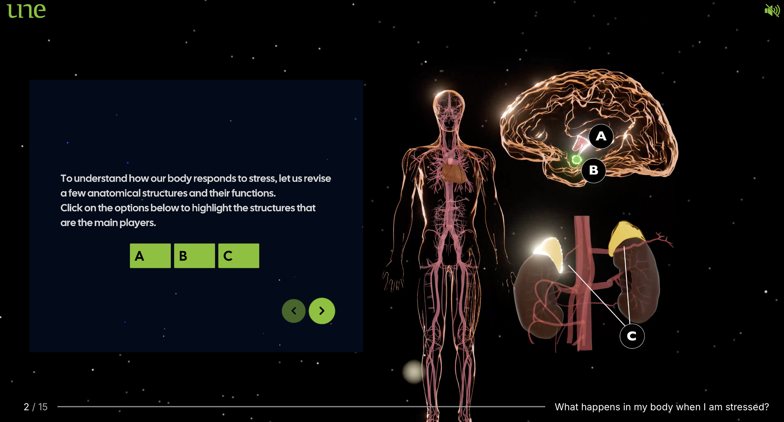 Using 3D animation allowed us to visualise mechanisms occurring inside the body, while also helping students understand the spatial relationships between the anatomical structures involved and the pathways of each mechanism.